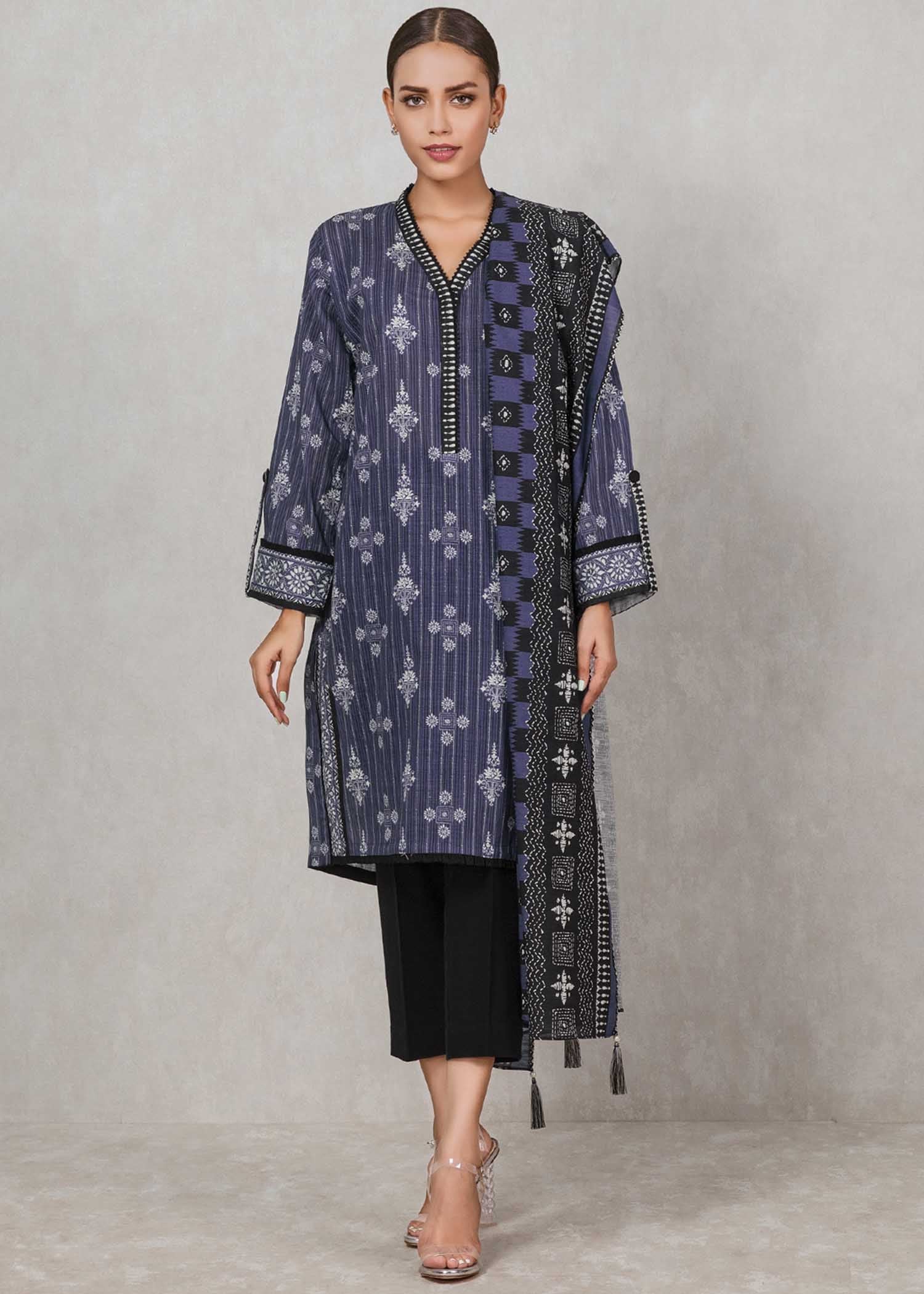 Description: Edenrobe Women Unstitched Allure Khaddar. This is an unstitched